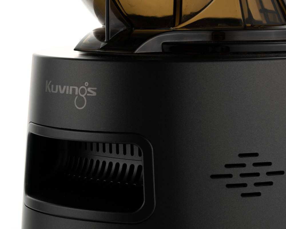 The name "Evolution" demonstrates Kuving's thinking behind this model. It is an evolution of their best-selling C9500 juicer, with a series of small improvements that add up to make it the best wide-mouth juicer on the market. For example, the juicing chamber is noticeably more solid and durable, with stronger materials and a new four-point connection to the motor base. This creates more stability which is needed when juicing large and firm produce like carrots and beets. The pulp outlet has been made larger with a big cutout in the top for easier cleaning. And all the things that made the C9500 so successful, like the juice tap and the integrated cleaning system, have been carried forward into the Evolution.